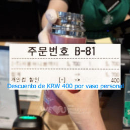 Cada vez que bebía, usaba mi vaso y mi taza personal. Un café me dio un gran descuento de KRW 400 porque usé mi vaso personal. Dado que lavo mi propio vaso, no me preocupa cuán limpia está una taza de un café.