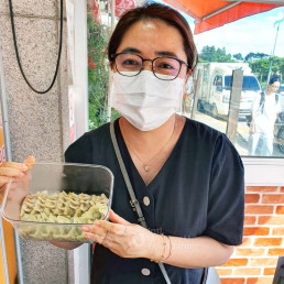 Compré deliciosos dumplings al vapor en el restaurante al que voy regularmente. Cuando entregué mi recipiente para comida para llevar, al dueño le gustó y puso con cuidado los dumplings en el recipiente. No parece que haya contribuido mucho al medio ambiente, pero al hacerlo, pude evitar usar tres contenedores de espuma de poliestireno. Seré más valiente para usar mi contenedor en las tiendas participando en el desafío Tengamos VALOR.