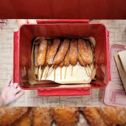 Serví corndogs en la reunión de estudio. Mis hijos y yo pusimos corndogs en un recipiente grande y los llevamos a la reunión. Un niño dijo que participó en el desafío Tengamos VALOR en una heladería con sus padres. También participaremos en el desafío de agosto con nuestros hijos.