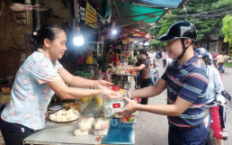 Cuando voy a mi ciudad natal, uso esta bolsa para ir de compras. No es elegante, pero sí resistente y amigable con el medio ambiente. A medida que los desechos plásticos se desbordan y la temperatura global aumenta, la ciudad de Hanói hizo esta bolsa como parte de una campaña ambiental. Hoy, usé esta bolsa al comprar verduras.