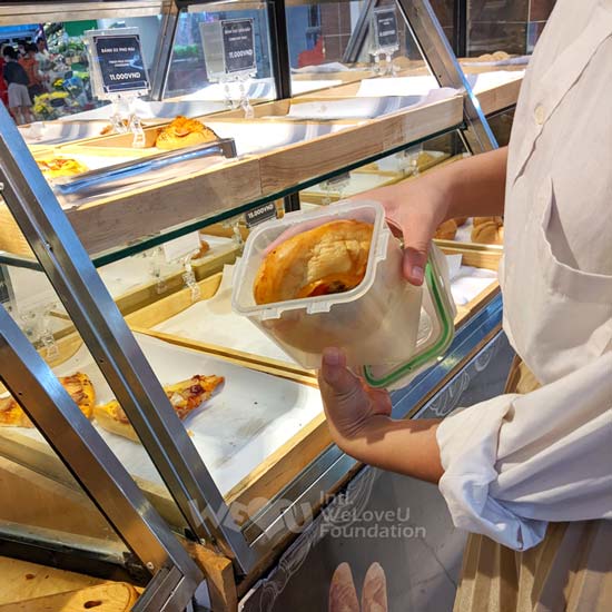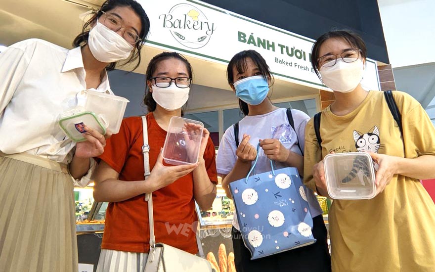 Repartí los contenedores que traje de casa a los niños y les expliqué el desafío. Íbamos juntos a comprar donas y los niños estaban emocionados de participar en el desafío por el medio ambiente. El dueño de la tienda dijo que era bastante conveniente servirlo en un recipiente. Mientras comíamos donas juntos, uno de los niños estaba lleno y preguntó: “¿Puedo poner las sobras en el recipiente y traerle el recipiente más tarde?”. Le dije que podía hacerlo. Es genial actuar por el medio ambiente en nuestra vida diaria.