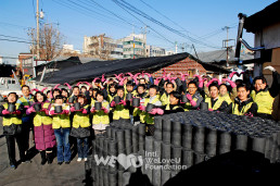 El 25 de noviembre, la Fundación Internacional WeLoveU donó 10 000 briquetas de carbón al pueblo de Nokcheon, Weolgae 2-dong, Nowon-gu, Seúl. Siguiendo la voluntad de la Presidenta Zahng Gil-jah, quien es muy consciente de que el invierno es la estación más difícil para nuestro prójimo desfavorecido, los miembros de la fundación pusieron manos a la obra una vez más, tres días después de realizar el evento de preparación de kimchi para el prójimo desafortunado.