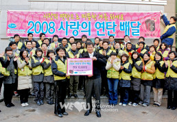 A pesar del frío clima, 60 miembros además de la Presidenta Zahng Gil-jah, el Embajador de Buena Voluntad de la Fundación, el actor Kim Seong-hwan y el jefe de la oficina distrital de Nowon, Kim Seong-hwan (del mismo nombre), participaron en la “Entrega de Briquetas de Carbón para el Prójimo Necesitado 2010”.