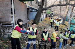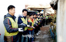 El prójimo que recibió las briquetas de carbón fueron 100 hogares de ancianos que viven solos y beneficiarios del programa de subsistencia en el pueblo de Nokcheon. Los miembros entregaron kimchi, arroz y sets de regalos para las familias de escasos recursos. La Presidenta Zahng Gil-jah los consoló, diciendo: “Los miembros de la Fundación WeLoveU prepararon estas cosas con todo su corazón. Por favor estén saludables en el frío invierno”.