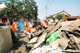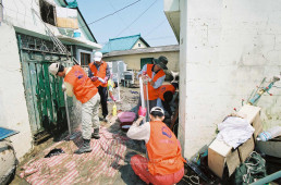 Entre las regiones, Hanrim-myeon en la ciudad de Gimhae resultó afectada más severamente. Más de 50 miembros de la Fundación de Bienestar Nueva Vida de la sucursal de Busan y de las regiones aledañas, llevaron a cabo un servicio voluntario en Hanrim-myeon durante dos días.